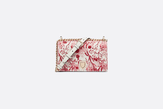 紅色白底的約依印花圖案,乍一看有種水墨畫的感覺。基本上大火的幾款包,LADY DIOR,馬鞍包,DIOR BOOK托特包和DIORAMA,都出了限量款。